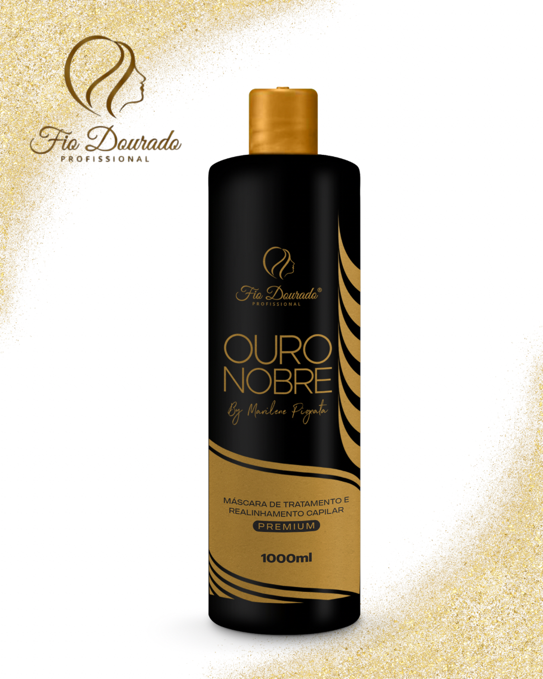 REALINHAMENTO OURO NOBRE: É um tratamento capilar intenso sem formol e ácido glioxílico, sem pausa de uma hora, para reconstruir e reduzir volume de toda fibra capilar, fornece nutrientes essenciais para restaurar a elasticidade dos fios extra-ressecados. Sua formula contém acído latíco, ácido tanino, macadâmia, semente de linhaça e pantenol, pantenol é fundamental para hidratação dos cabelos. Isso porque, ele possui o poder de atrair e reter a umidade , além de combater radicais livre.